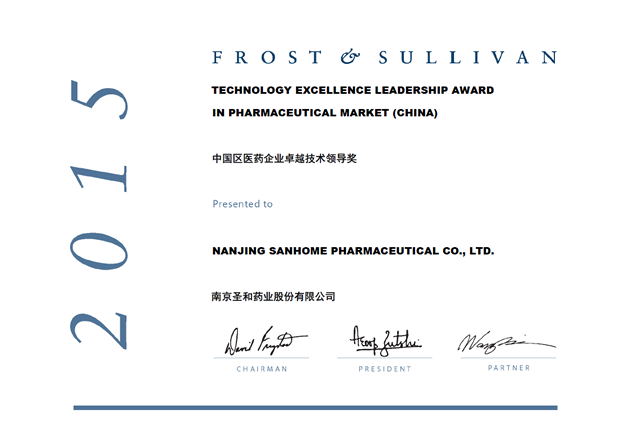 2015中國區(qū)醫(yī)藥企業(yè)卓越技術領導獎