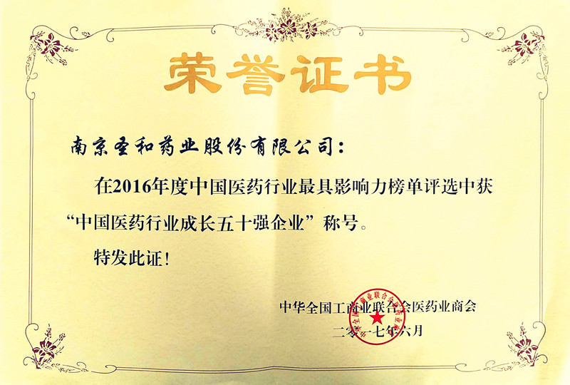 2016年度中國醫(yī)藥行業(yè)成長五十強(qiáng)企業(yè)