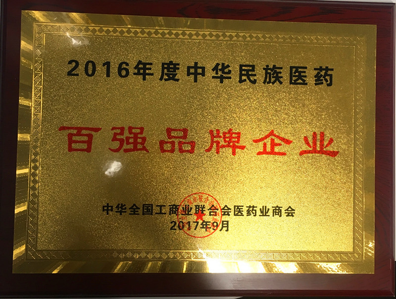 2016年度中華民族醫(yī)藥百?gòu)?qiáng)品牌企業(yè)