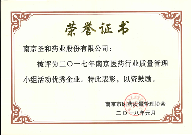 南京醫(yī)藥行業(yè)質(zhì)量管理小組活動(dòng)優(yōu)秀企業(yè)
