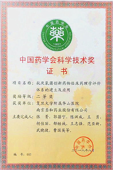 中國(guó)藥學(xué)會(huì)科學(xué)技術(shù)獎(jiǎng)二等獎(jiǎng)