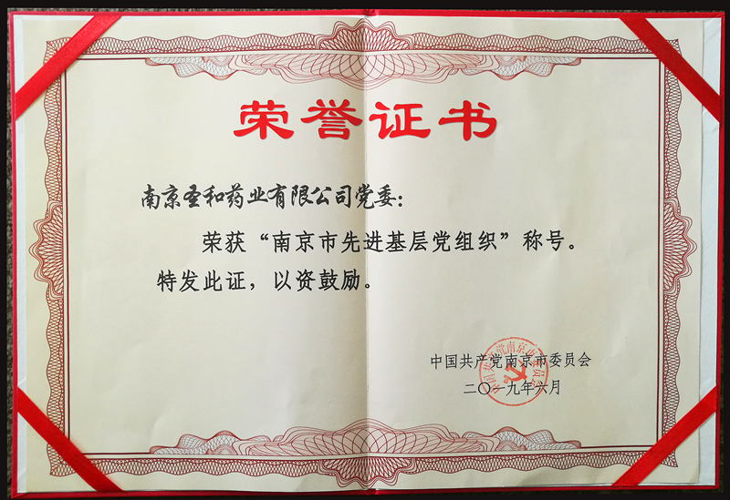 公司黨委獲“南京市先進(jìn)基層黨組織”榮譽(yù)稱號(hào)